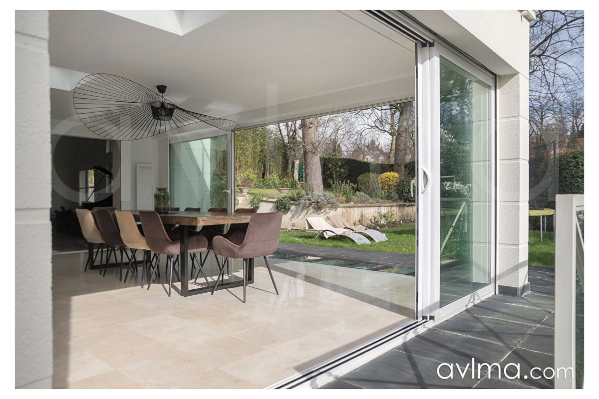 A 3km de Saint Germain en Laye, Dans une petite résidence sécurisée de 13 villas, sur une parcelle de 1418m2, belle demeure totalement rénovée de 466m2 ( Surface au sol 516m2) et un grand garage de 88m2. La maison se compose au RDC d'une belle entrée donnant sur une réception triple baignée de lumière, une salle à manger donnant sur la terrasse et sur une grande cuisine. Une suite parentale avec dressing, salle de bain et douche. De grandes baies vitrées s'ouvrent sur un grand jardin entourant toute la maison. Au 1er : Une suite parentale avec salle de bains, dressing et un espace bureau, une seconde suite avec salle de douches et rangements. Un espace bureau desservant deux autres chambres ainsi qu'une salle de bains avec douche puis une dernière chambre avec un accès sur une grande terrasse. En rez de jardin : un bureau avec un accès totalement indépendant, idéal profession libérale ou possibilité studio pour jeune fille au pair. Un espace détente avec piscine à contre courant, jacuzzi, et hammam donnant sur une petite terrasse. Salle de sports, salle de billard, espace home cinéma, salle de musique insonorisée, buanderie et cave à vin et de nombreux rangements. Garage 2 voitures. Idéalement placée, proche de la gare ( Ligne L desservant en direct La Défense et Paris Saint Lazare) et du centre ville. Il ne reste plus qu'à poser vos valises, une visite s'impose rapidement!! Contactez Nathalie Raquel au 06 22 69 31 66